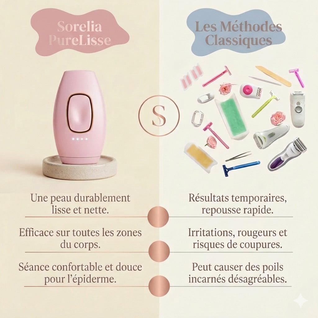 Choisir l'IPL Sorelia Purelisse, c’est opter pour la fusion parfaite entre haute technologie et douceur absolue. Notre système intelligent neutralise le poil à la source tout en respectant votre peau, rendant chaque séance aussi simple qu'efficace.